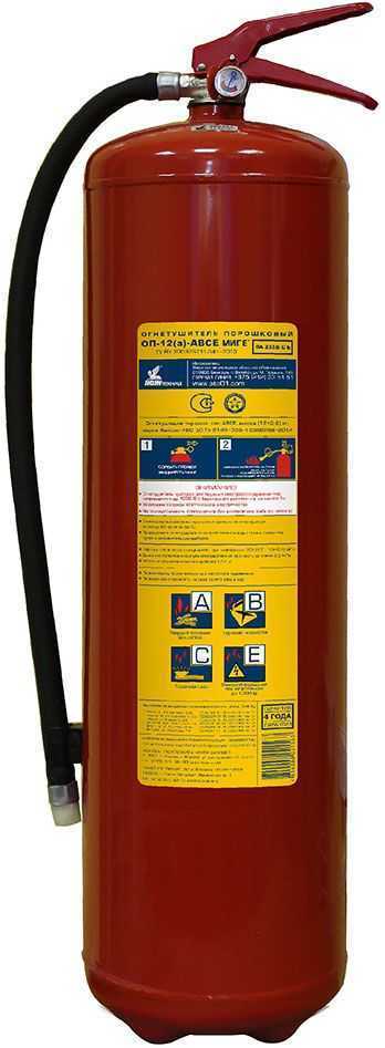 Условное обозначение огнетушителя при заказе Огнетушитель ОП-12(з) АВСЕ «МИГ Е» (6А, 233В, С, Е)